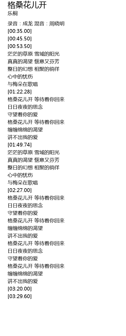 | [01:36.14] | 格桑花儿开 等待着你回来 |