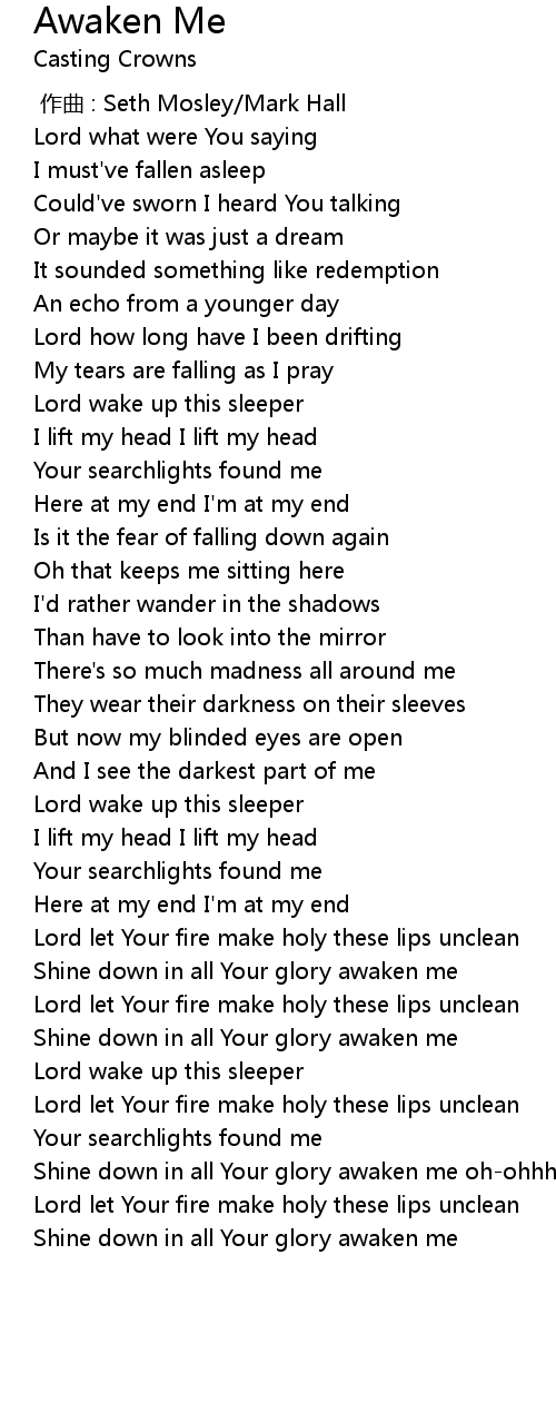 | [04:21.31] | Shine down in all Your glory awaken me ohohhhohh |