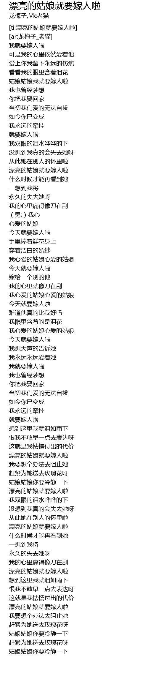| [ti:漂亮的姑娘就要嫁人啦] | |