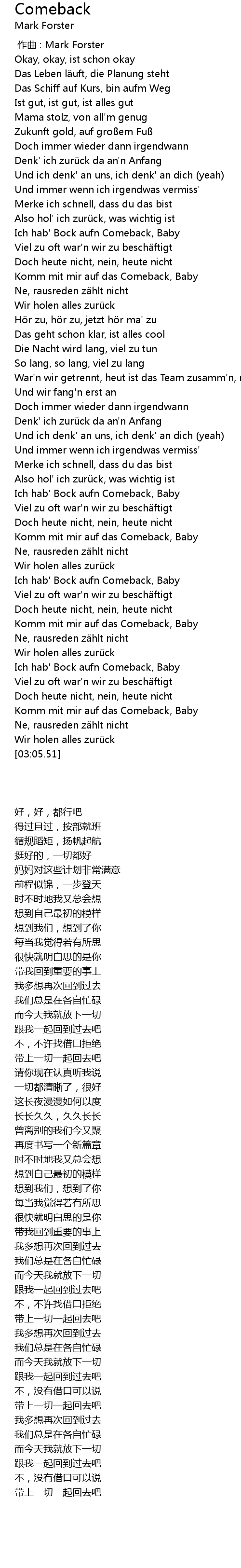 | [02:36.79] | Komm mit mir auf das Comeback, Baby |