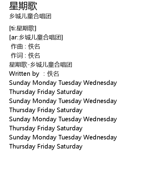 | [00:00.151] | 星期歌-乡城儿童合唱团 |