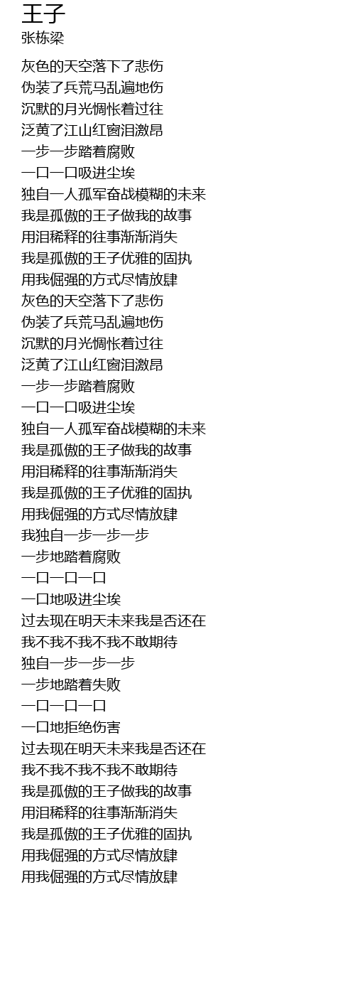 | [02:03.69] | wǒ shì gū ào de wáng zǐ zuò wǒ de gù shì |