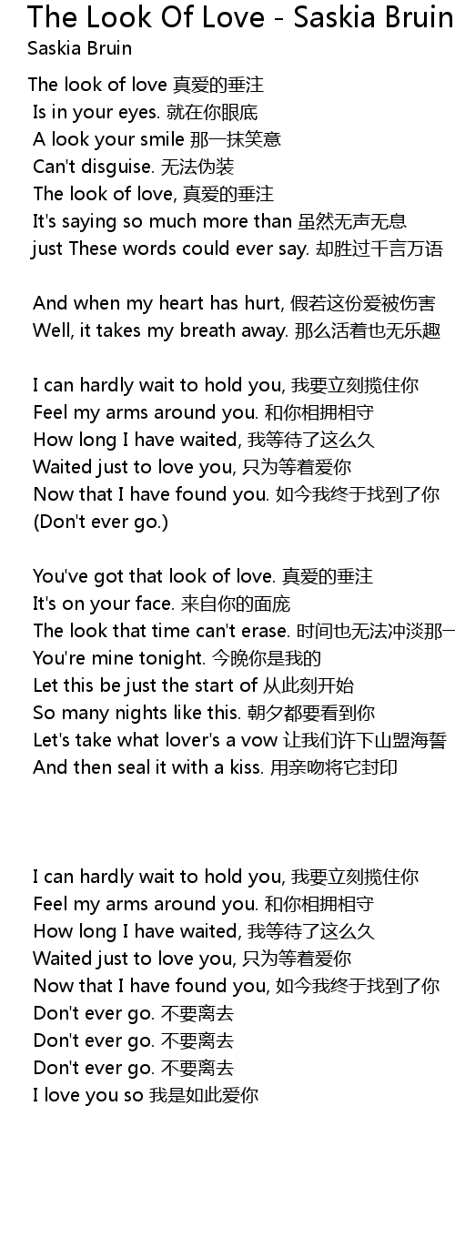 | Song | The Look Of Love - Saskia Bruin 爱的容颜 |