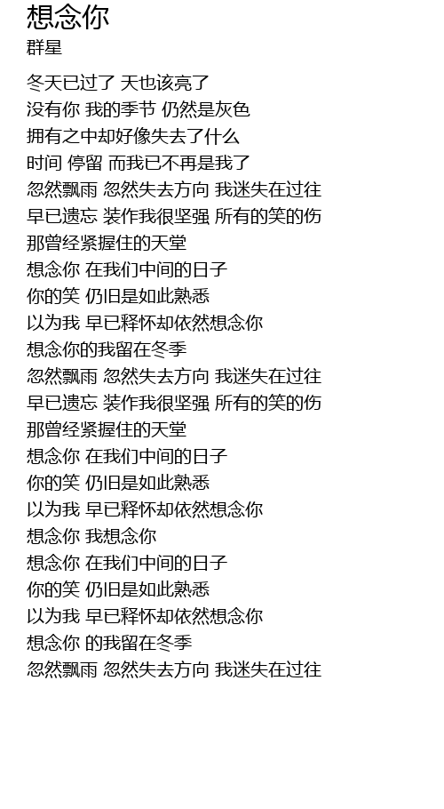 | [02:23.09] | 想念你 在我们中间的日子 |