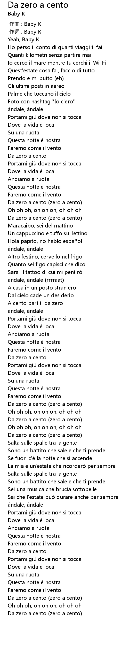 | [02:03.66] | Da zero a cento (zero a cento) |