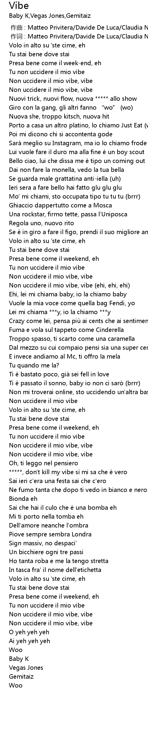 | [02:11.76] | Non uccidere il mio vibe, vibe |