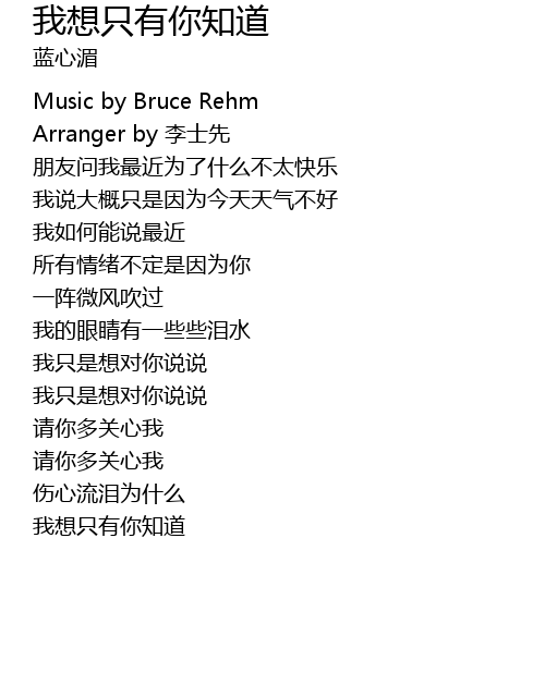 | wǒ xiǎng zhǐ yǒu nǐ zhī dào |