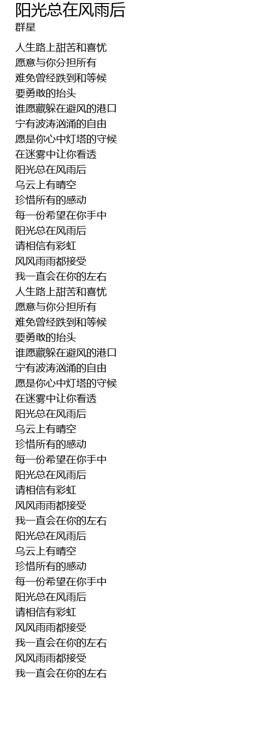| [01:32.520] | 阳光总在风雨后 |