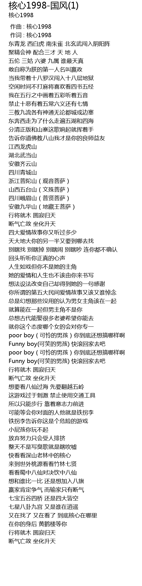 | [02:26.071] | poor boy ke lian de nan hai ni dao di hai xiang gao na yang a |