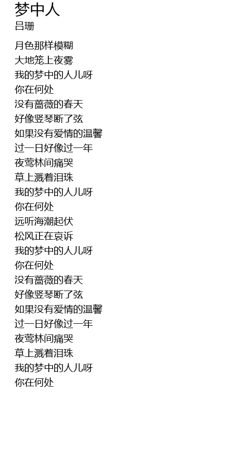 | [01:22.902] | 我的梦中的人儿呀 |