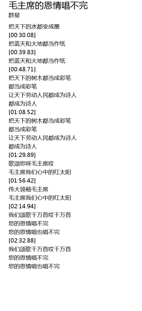 | [01:39.01] | 歌颂您呀毛主席哎 |
