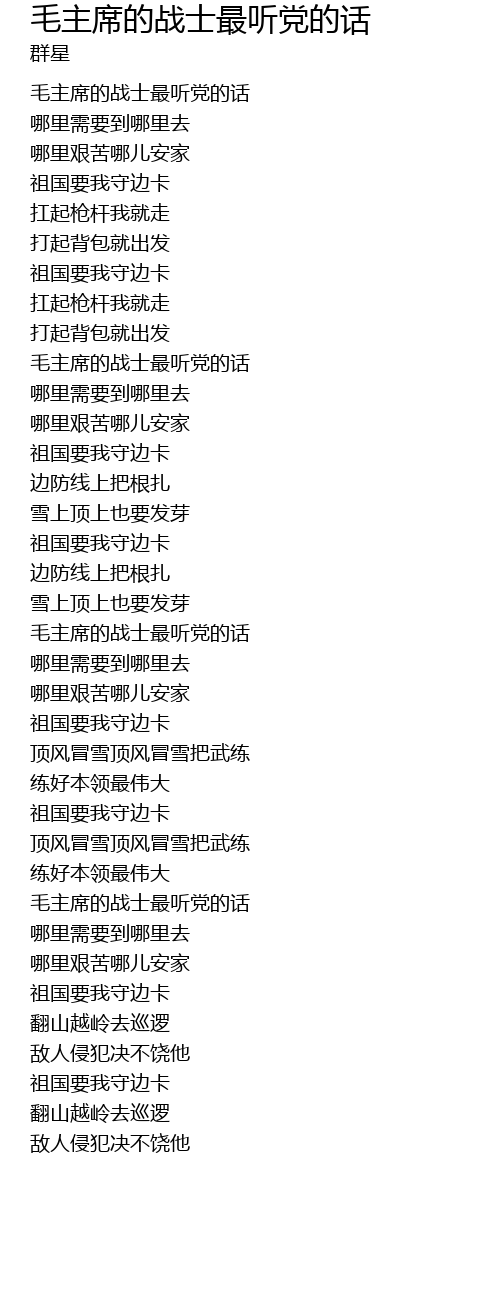 | [01:41.520] | 毛主席的战士最听党的话 |