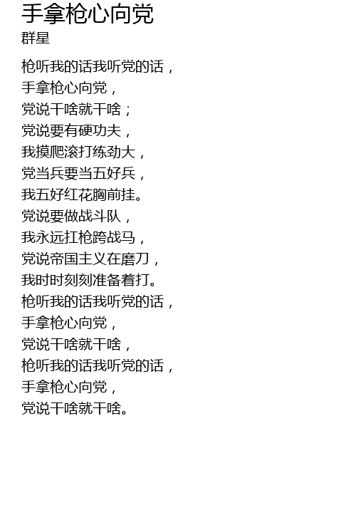 | shǒu ná qiāng xīn xiàng dǎng, | |