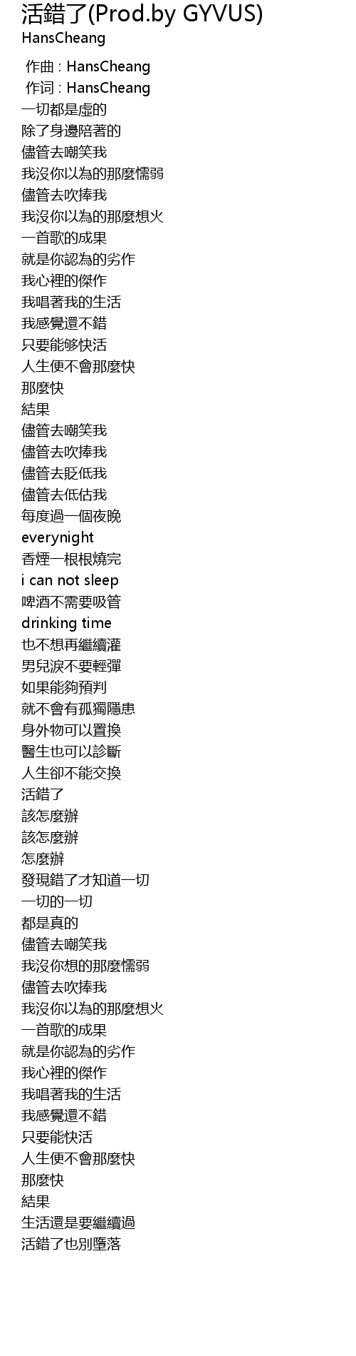 | [02:41.027] | huó cuò le yě bié duò luò |