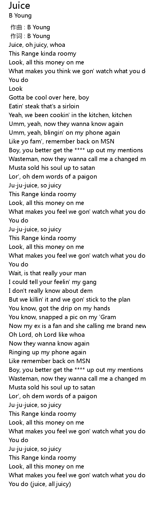 | [01:54.34] | Ju-ju-juice, so juicy |
