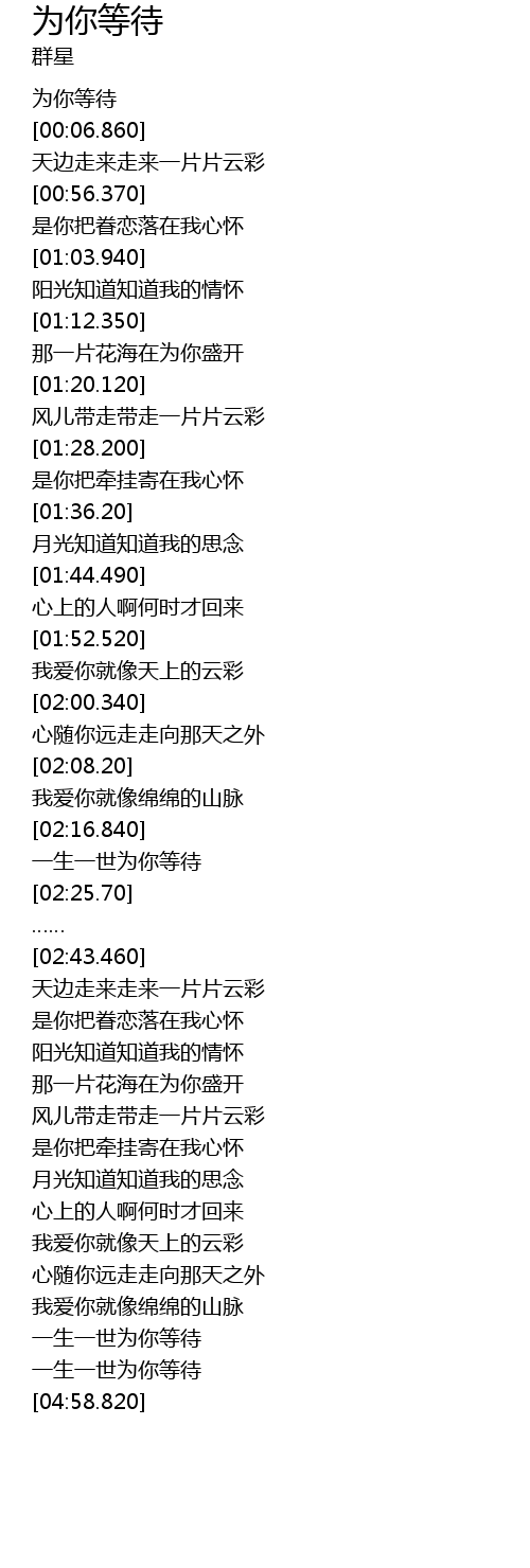 | [04:03.770] | 我爱你就像天上的云彩 |
