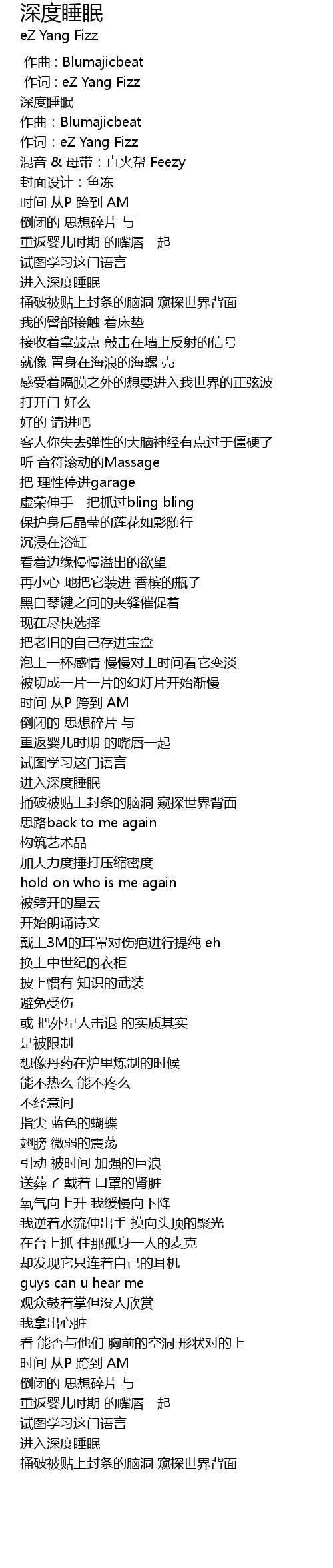 | [02:36.888] | jìn rù shēn dù shuì mián |