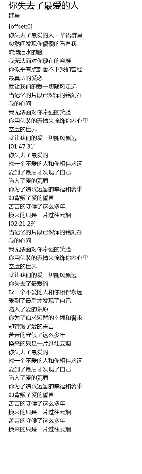 | [00:10.40] | 你失去了最爱的人 - 华语群星 |