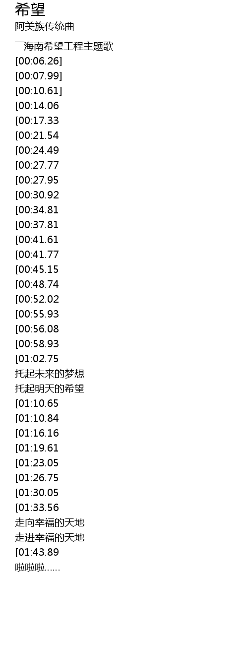 | [00:03.67] | ――海南希望工程主题歌 |