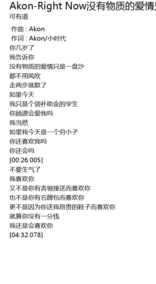 | [00:00.405] | zuò cí : Akon xiǎo shí dài |