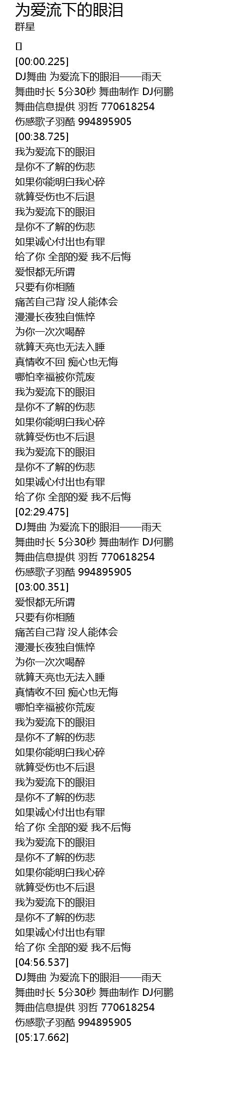 | [04:58.521] | DJ舞曲 为爱流下的眼泪——雨天 |