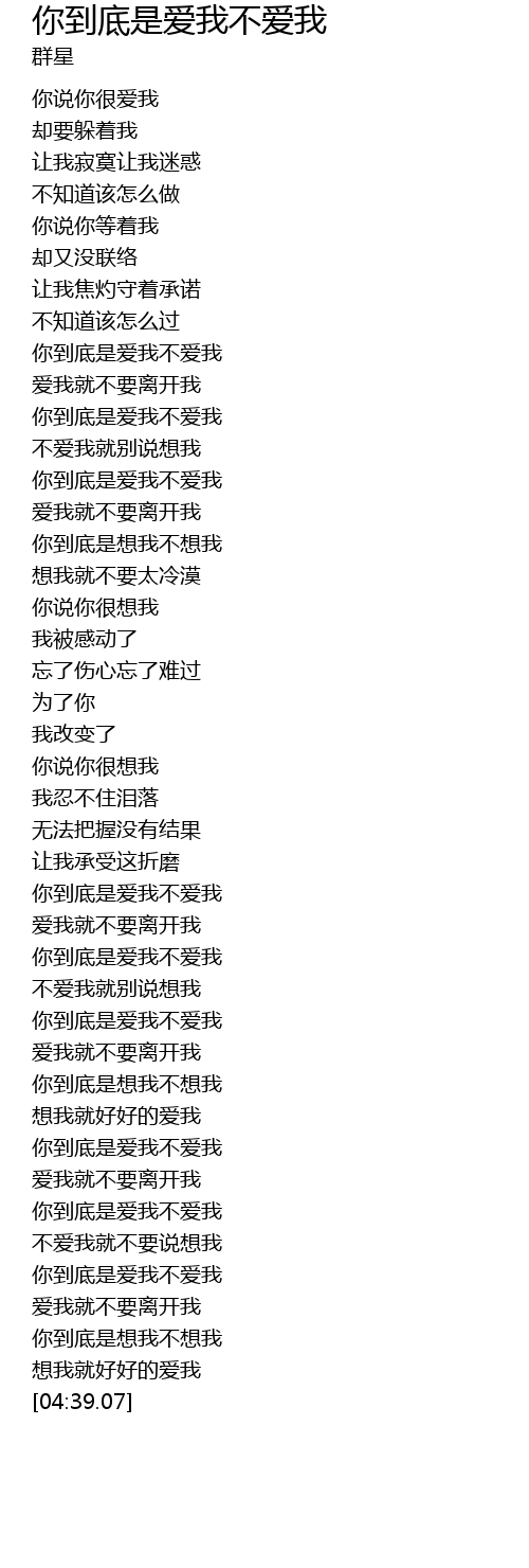 | [04:07.03] | nǐ dào dǐ shì ài wǒ bù ài wǒ |