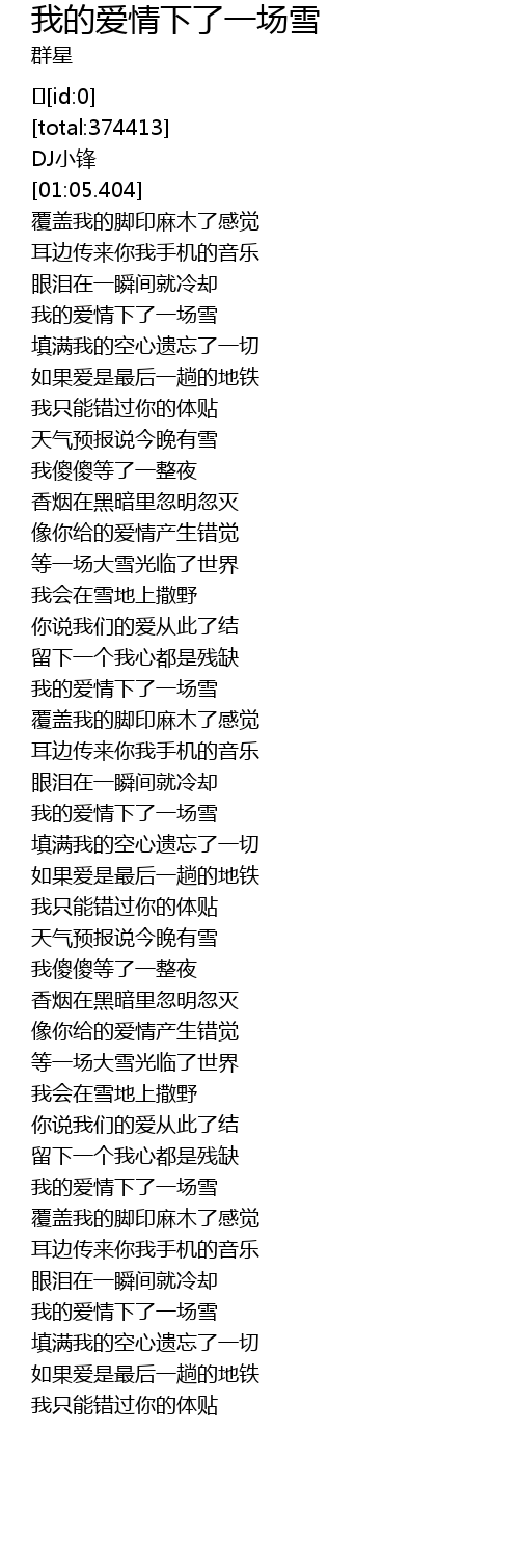 | [01:17.400] | wǒ de ài qíng xià le yī chǎng xuě |