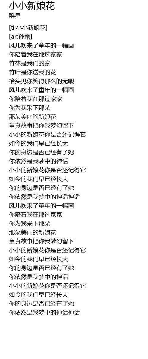| [01:30.452] | xiao xiao de xin niang hua ni shi fou hai ji de ta |