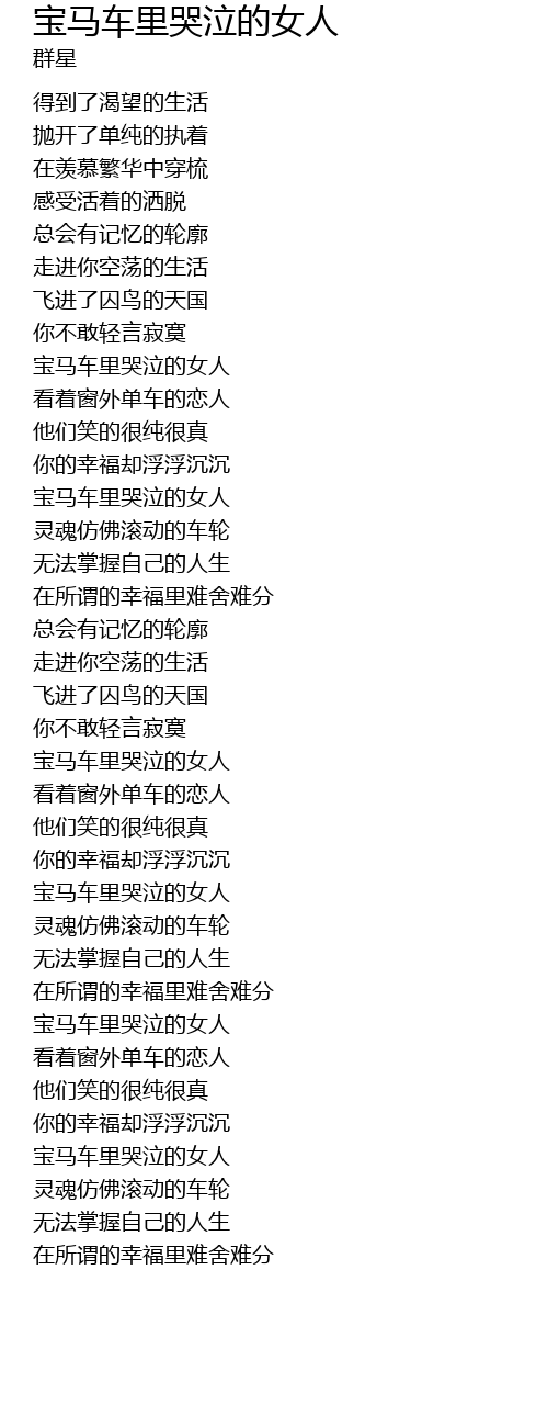 | [03:48.860] | 宝马车里哭泣的女人 |