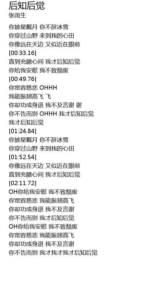 | [01:18.65] | wǒ cái hòu zhī hòu jué |