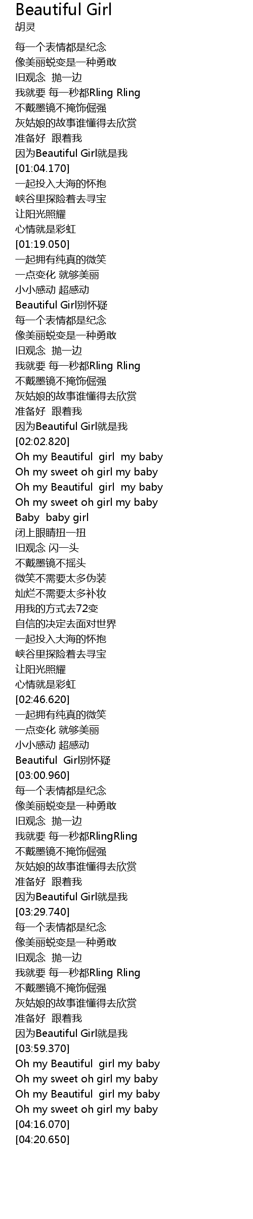 | [02:56.970] | Beautiful Girl bié huái yí |