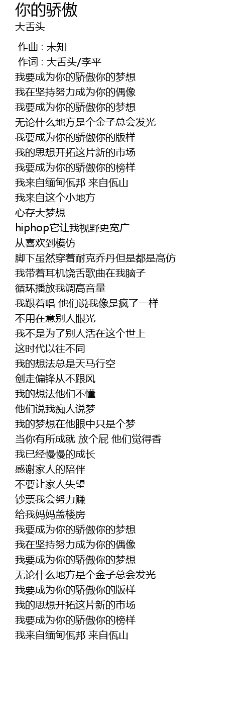 | [00:01.000] | 作词 : 大舌头/李平 |
