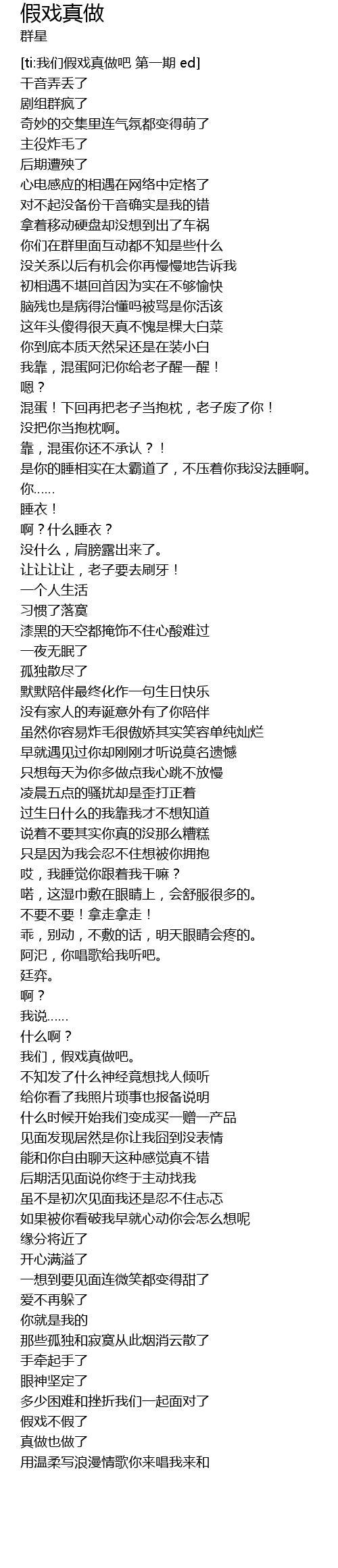 | [ti:我们假戏真做吧 第一期 ed] | |