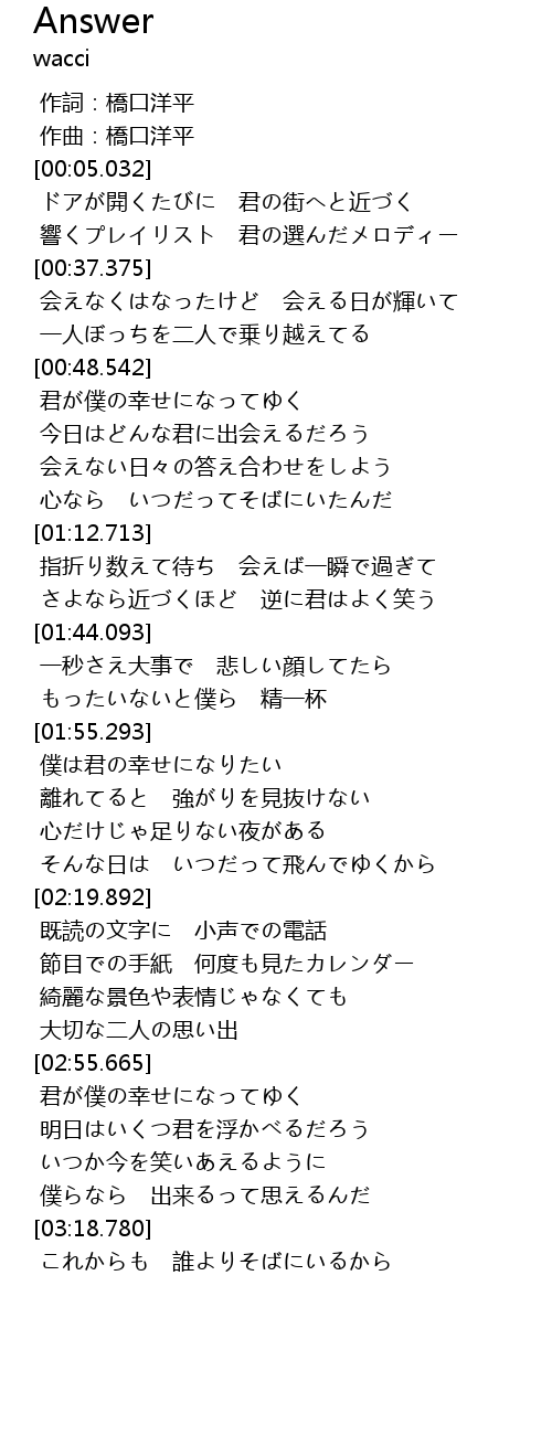 | [01:55.559] | 僕は君の幸せになりたい |