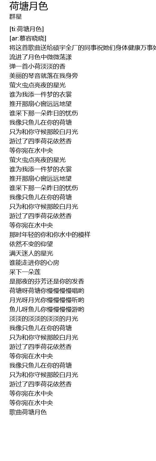 | [02:37.954] | 荷塘呀荷塘你慢慢慢慢唱哟 |