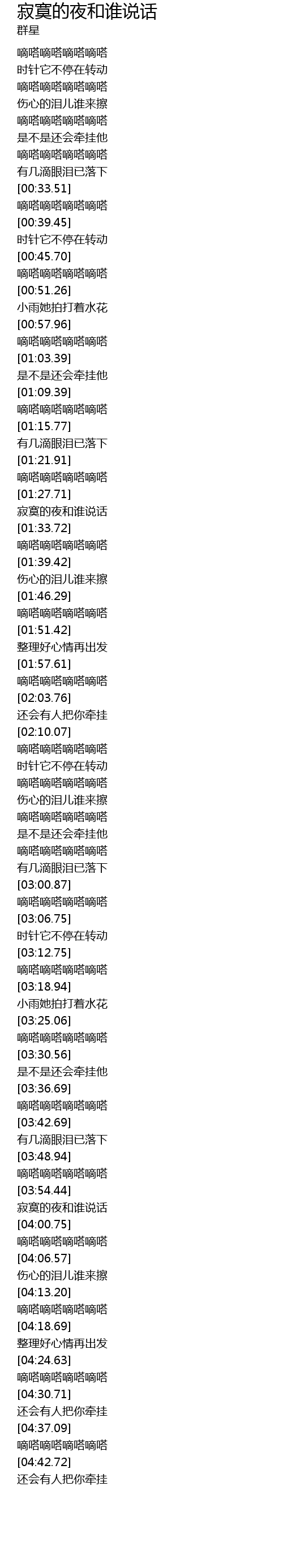 | [03:56.57] | 寂寞的夜和谁说话 |
