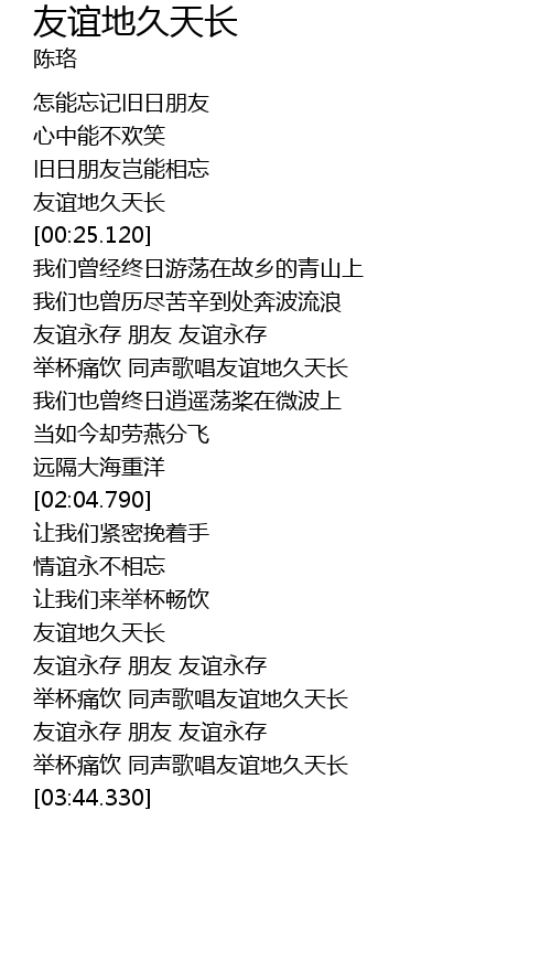 | [03:19.770] | 友谊永存 朋友 友谊永存 |