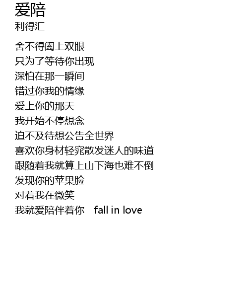 | 我就爱陪伴着你 fall in love |
