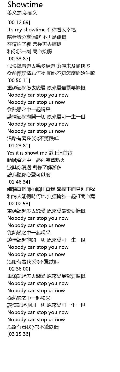 | [01:30.93] | Yes it is showtime 獻上這首歌 |