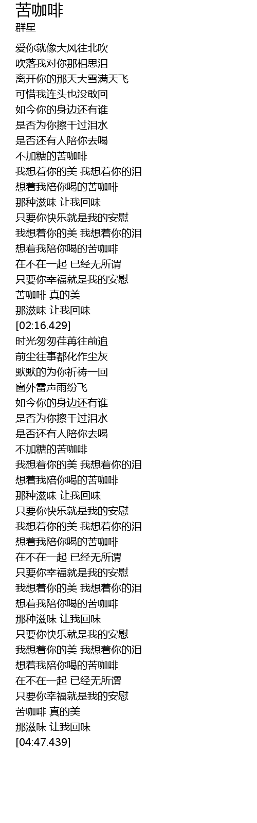 | [03:55.999] | 想着我陪你喝的苦咖啡 |