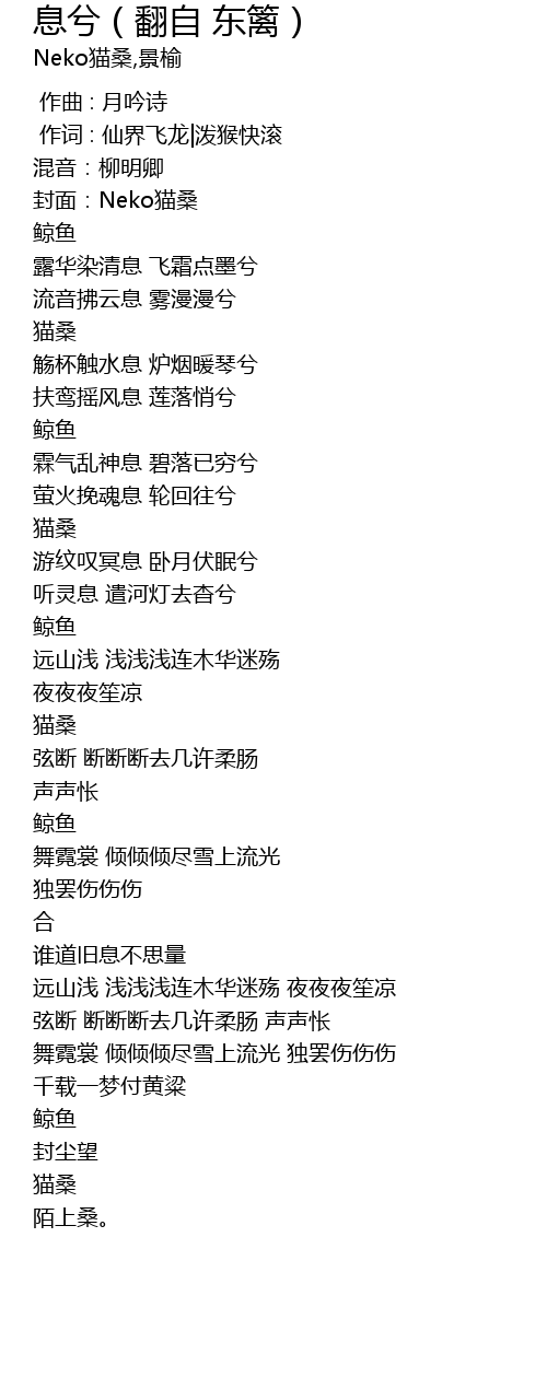 | [01:05.520] | 游纹叹冥息 卧月伏眠兮 |