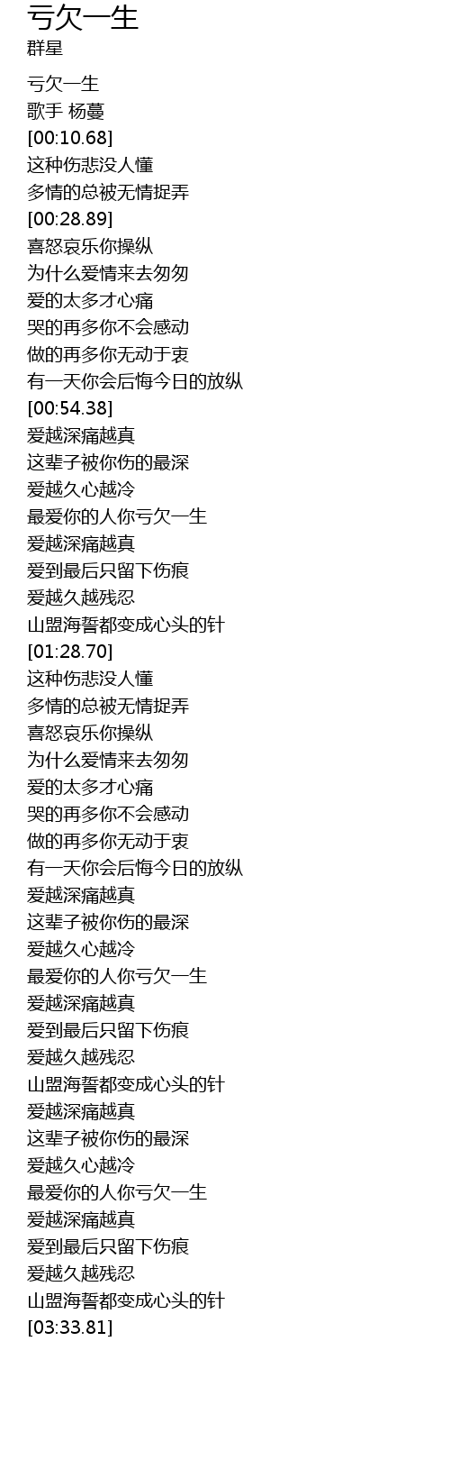 | [00:07.43] | 亏欠一生 |