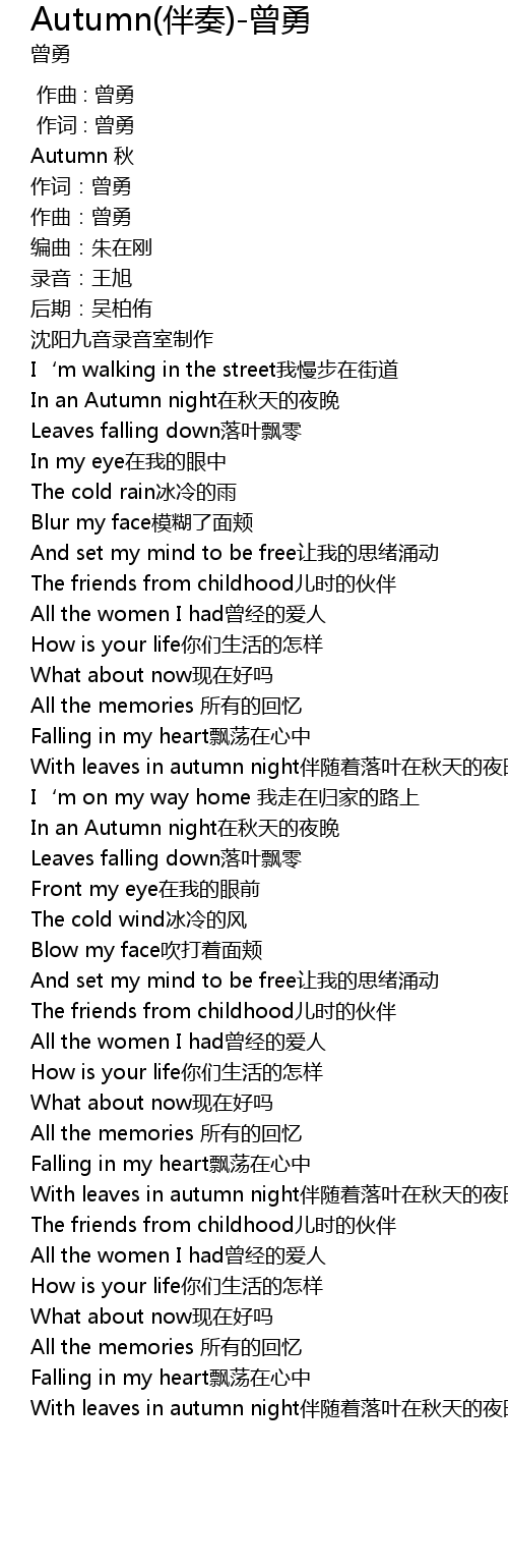 | [03:15.67] | With leaves in autumn night伴随着落叶在秋天的夜晚 |