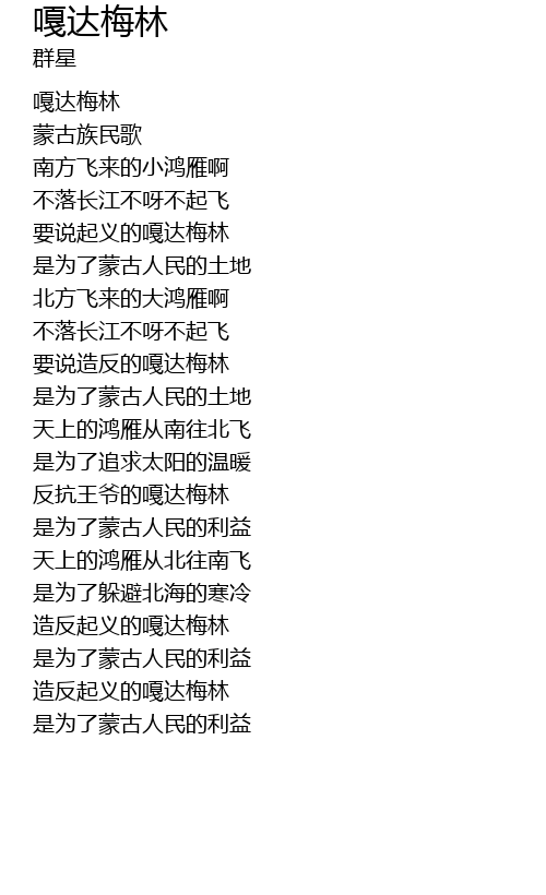 | [03:17.00] | 造反起义的嘎达梅林 |