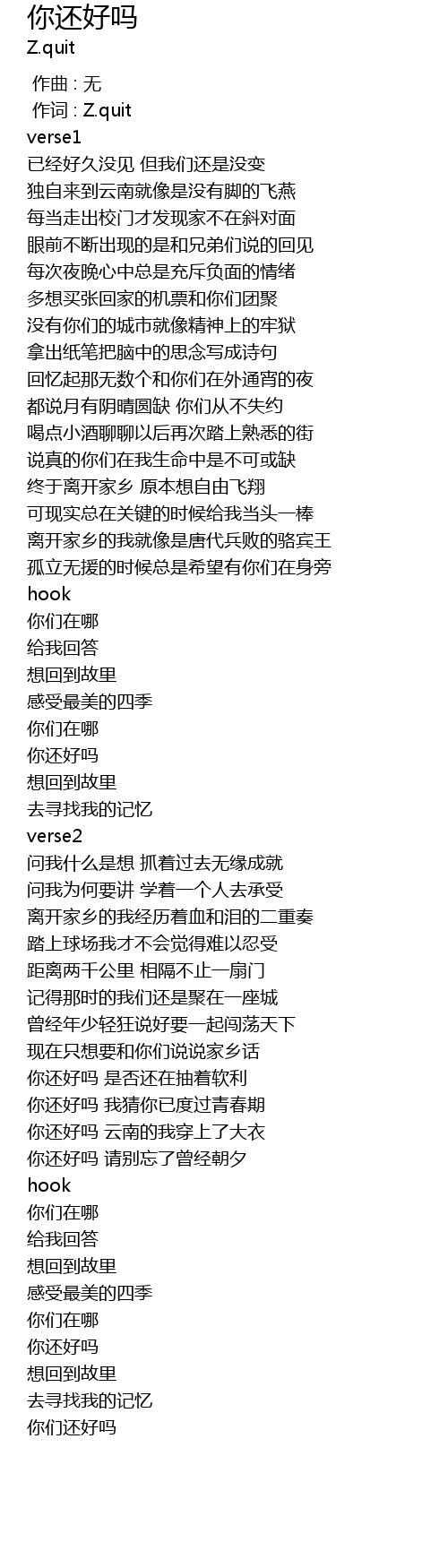 | [01:43.51] | 现在只想要和你们说说家乡话 |