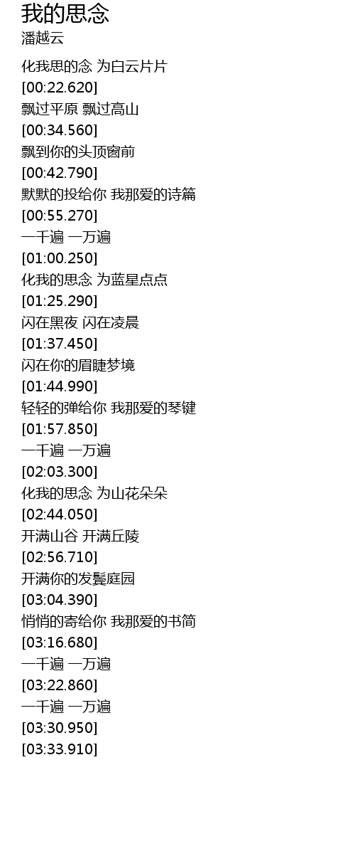 | [00:13.780] | huà wǒ sī de niàn wèi bái yún piàn piàn |