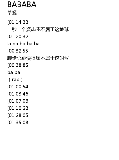 | [03:03.22][01:35.08] | gen wo men Sha ba la ba ba ba ba ba la ba ba ba ba |