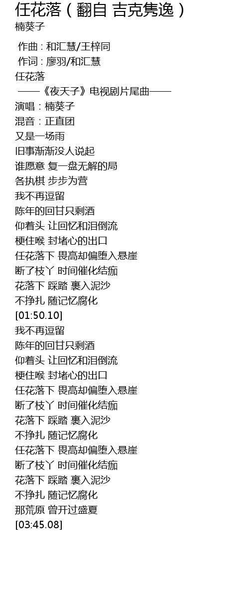 | [03:20.93] | 花落下 踩踏 裹入泥沙 |