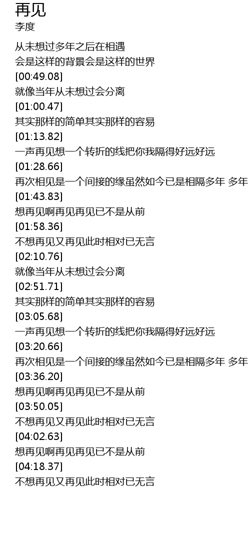 | [04:08.62] | 想再见啊再见再见已不是从前 |