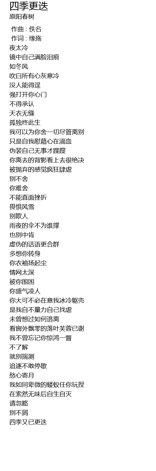 | [03:12.02] | sì jì yòu yǐ gēng dié |